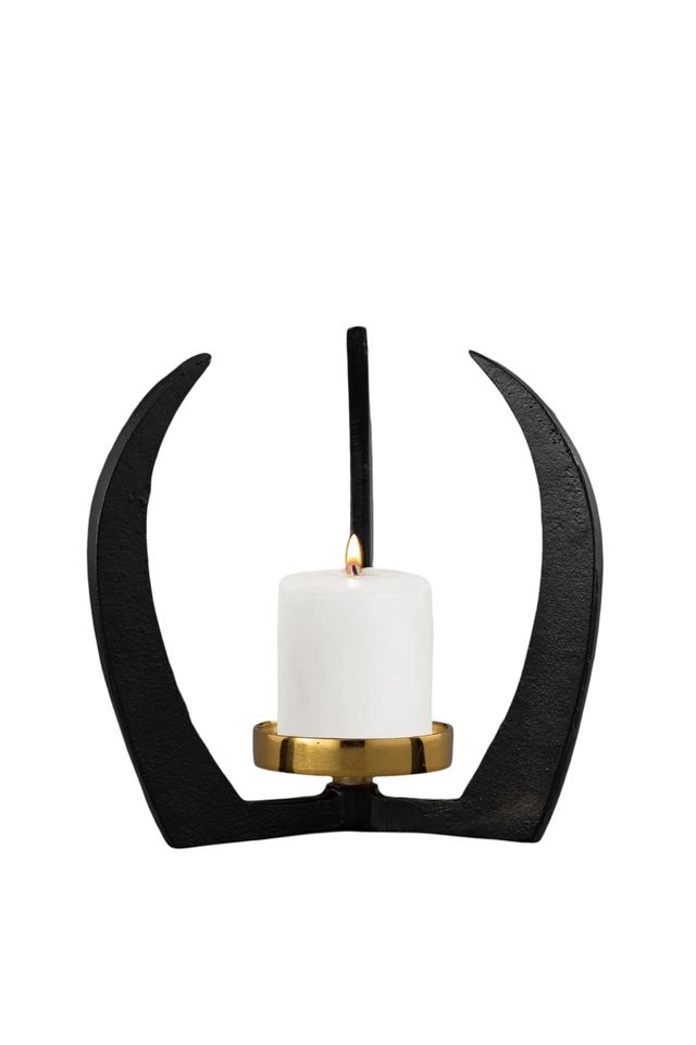 Bougeoir à bande rectangulaire en forme de bougeoir en fer Art Ware Moon Tea Light bougeoir pour la décoration intérieure avec couche de poudre noire