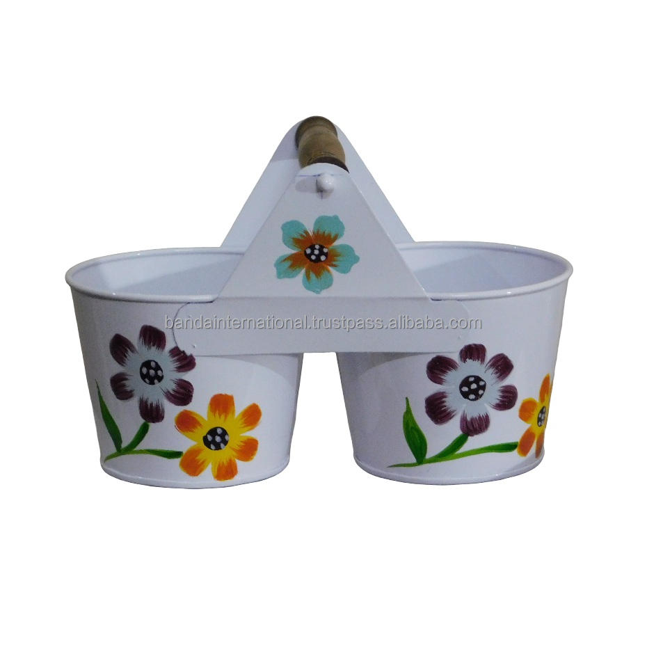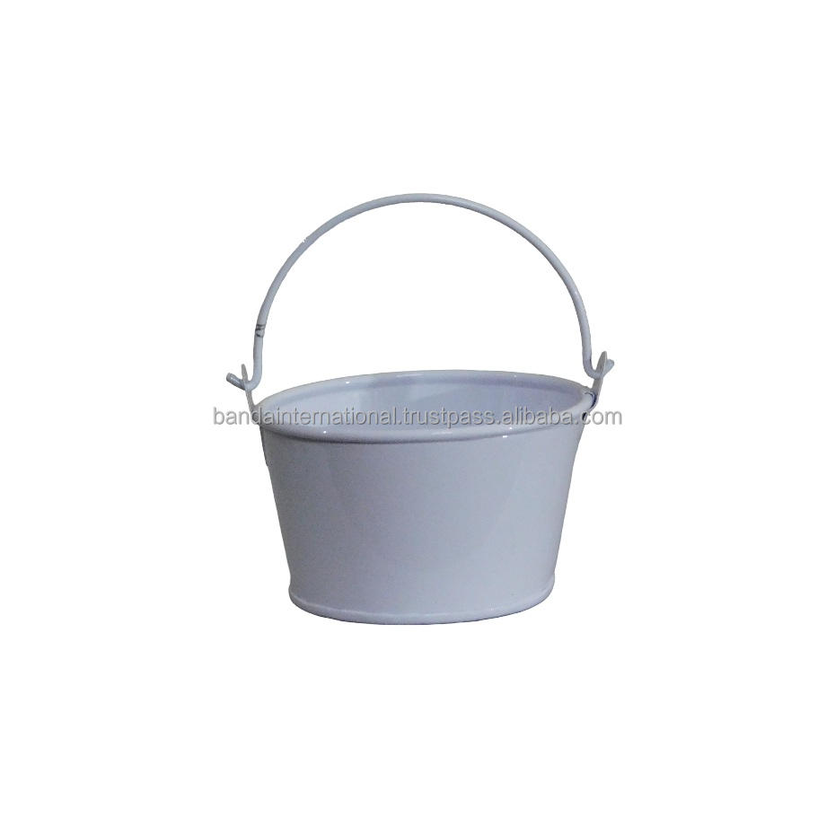 Seau rond en fer avec poignée et couleur blanche finie pour jardin Seau en métal avec poignée pour de nombreux usages