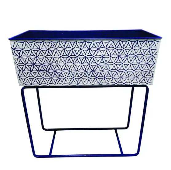 Iron Round Planter With Stand Blue Powder Coated With White Antique Colour Standard Size Flower Pot And Planters