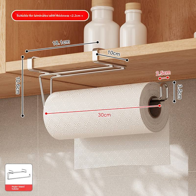 Support mural en fer pour rouleaux de papier toilette, écologique, pour cuisine, sans perçage, rangement pour essuie-tout, serviettes et film alimentaire