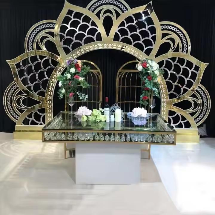 Arche de mariage en fer panneau de toile de fond décoratif moderne blanc brillant panneau de toile de fond de mariage personnalisé scène de mariage indien DSTExports
