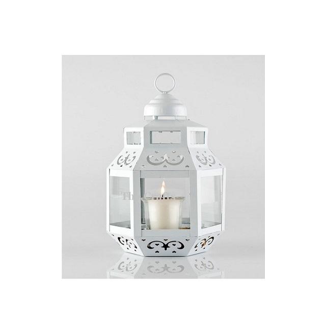 Lanterne à bougie de couleur blanche en fer Taille et forme personnalisées Lanterne de coupe suspendue pour la maison, l'hôtel et le mariage