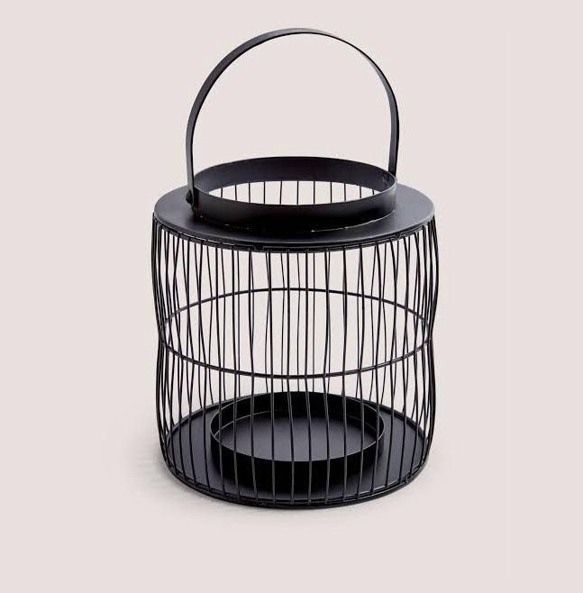 Lanterne en fil de fer avec un design de cage unique pour tenir des bougies chauffe-plat ou des bougies votives dans un décor de salon ou de balcon