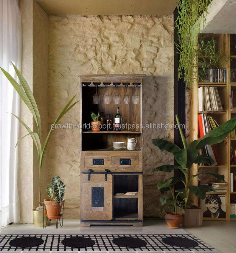 Meuble à spiritueux industriel haut de gamme en bois de manguier