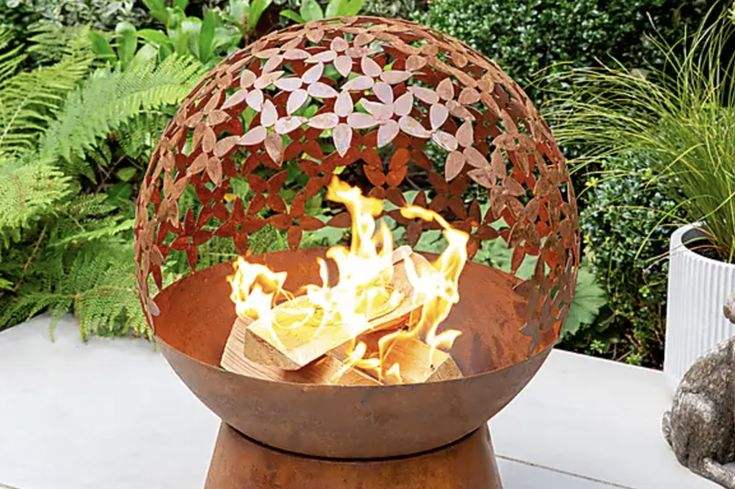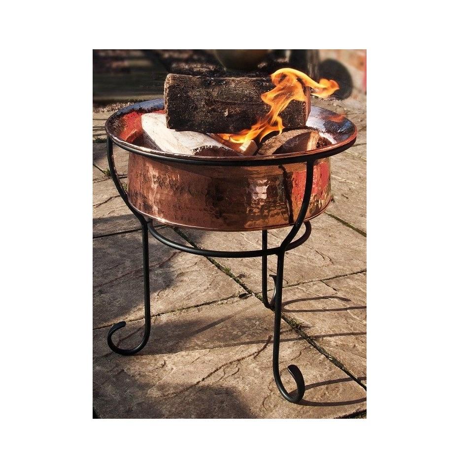 Brasero en fer avec un large bol artisanal et un look rustique, parfait pour les rassemblements nocturnes et les célébrations de jardin