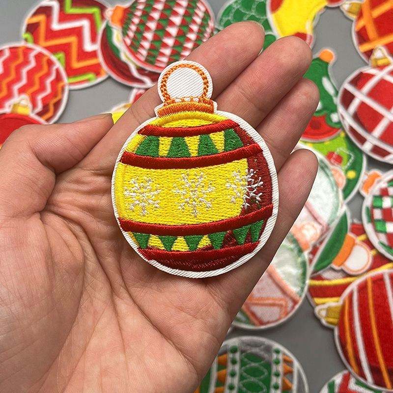 Patch thermocollant en chenille brodé, motif cloches de Noël, écologique, pour la décoration de vêtements et de chaussettes
