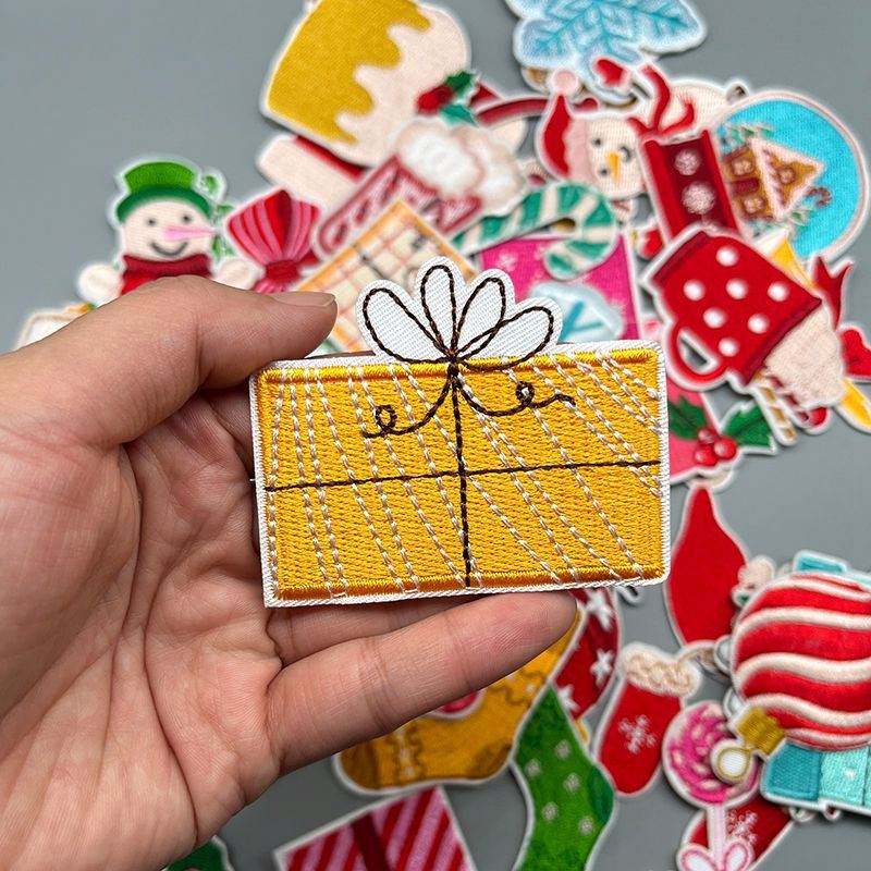 Patchs thermocollants écologiques brodés à l'ordinateur pour cadeaux de Noël, chaussettes, gants, bonhomme de neige, gâteau, sucette, pour vêtements, sacs, chapeaux