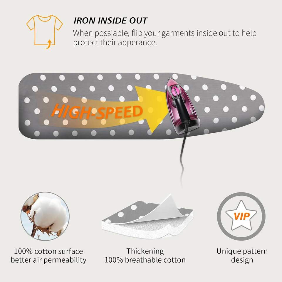 Housse de planche à repasser avec rembourrage extra épais de 7mm, housse 100% coton facile à installer pour protéger la taille de la planche à repasser jusqu'à