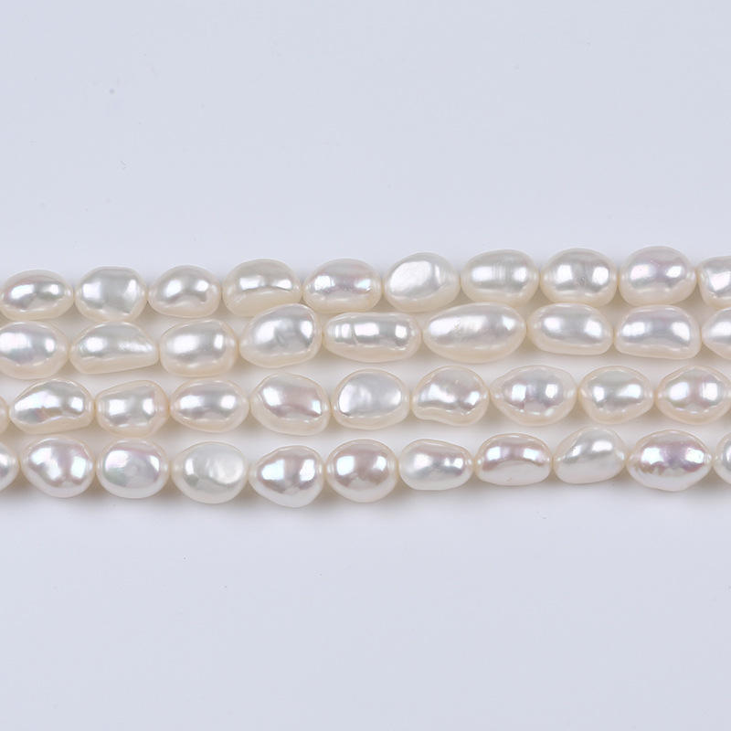 Perle d'eau douce baroque irrégulière blanche d'aquaculture 8-9mm, double face, légère, naturelle, trou vertical pour le bricolage