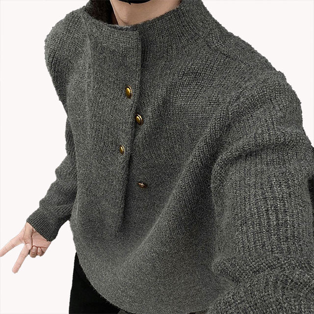 Pull en maille imprimé à col rond et boutons asymétriques pour femme, style coréen tendance, décontracté et chic, collection automne