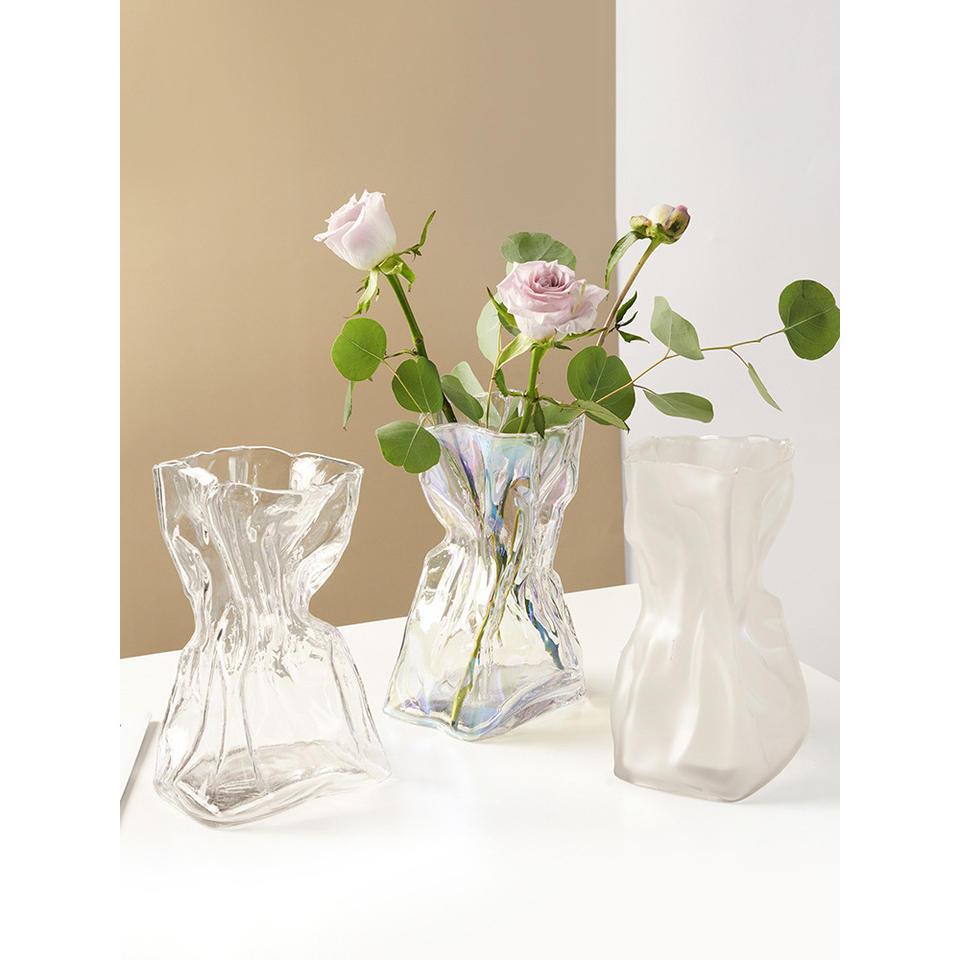 Décoration de table froissée colorée irrégulière taille en verre Vase en verre teinté à la taille mince