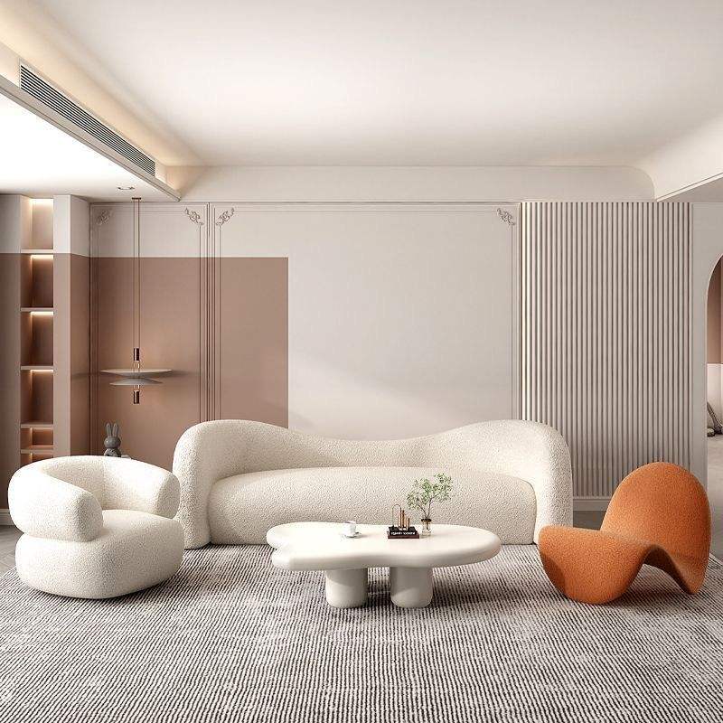 Canapé incurvé irrégulier couleur crème, rembourrage en mousse, design artistique, meubles de salon pour adultes, enfants et personnes âgées