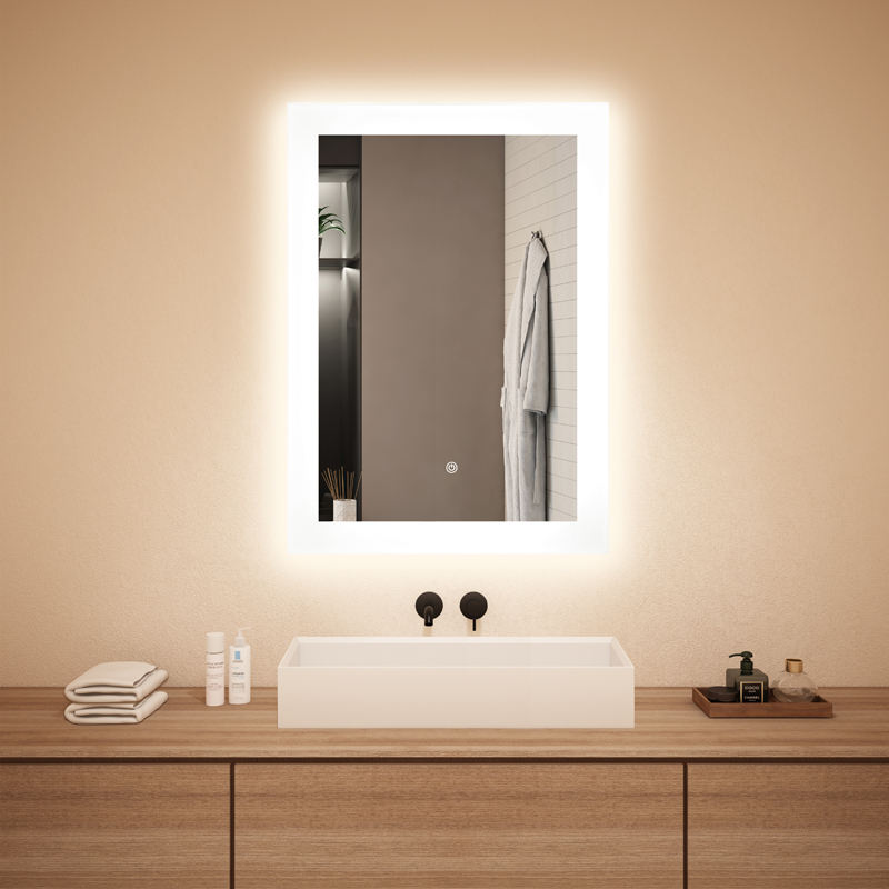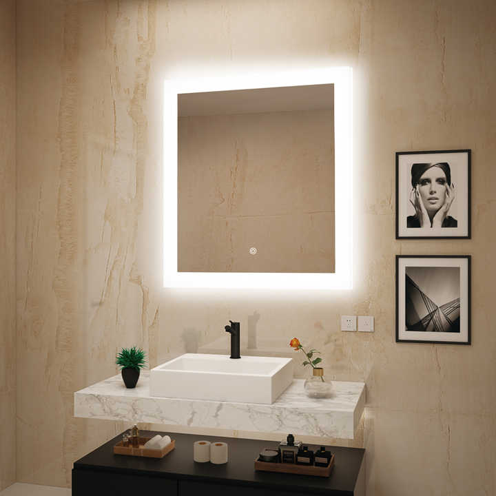 Miroir LED moderne irrégulier avec interrupteur tactile unique et variation de luminosité pour hôtels et villas