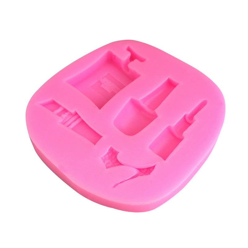 Moule en silicone pour décoration de gâteaux et fondants, formes irrégulières : rouge à lèvres, crayon à sourcils, parfum, vernis à ongles, talons hauts, motifs graphiques DIY