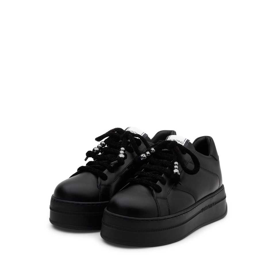 Isabel Women's Calfskin Sneaker Black Sporty High Platform Design Comfortable Breathable Lace-Up Walking Shoes Made Italy Summer