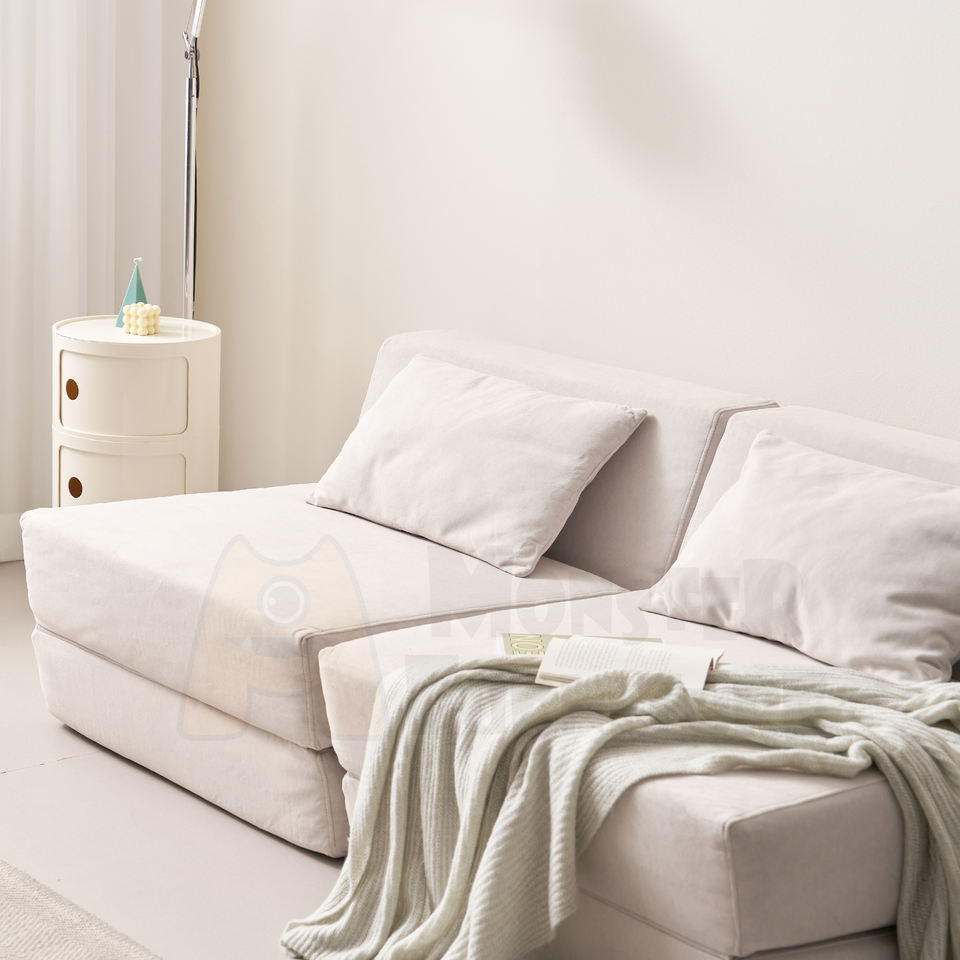 Canapé compressé Isla, canapé confortable en mousse, scellé sous vide pour un transport facile, sans assemblage, tissu imperméable, adapté aux animaux domestiques, avec housse amovible
