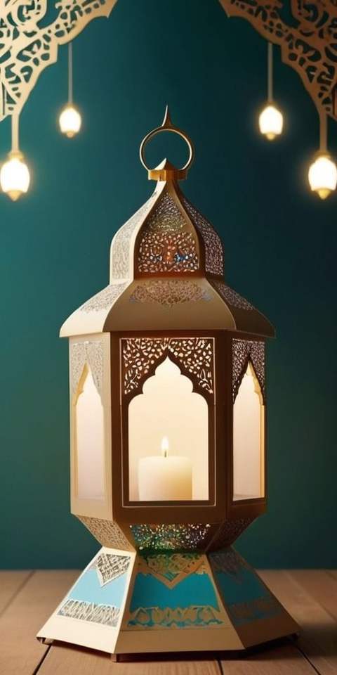 Lanterne de design arabe islamique en verre coloré et métal doré - Image de design, métal