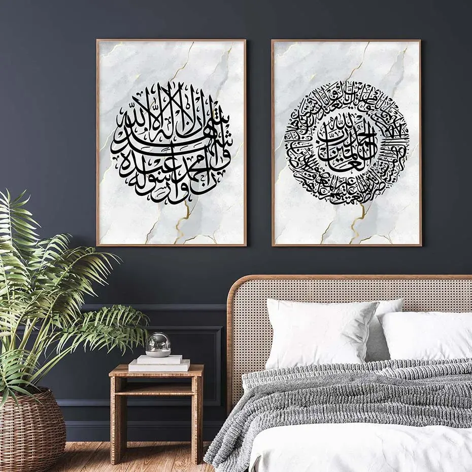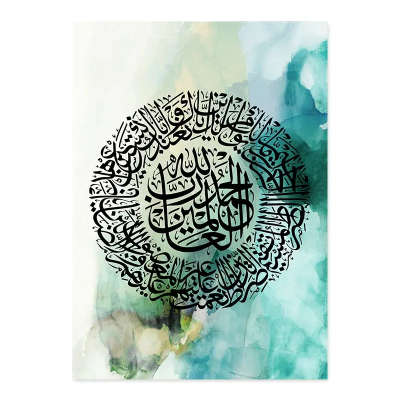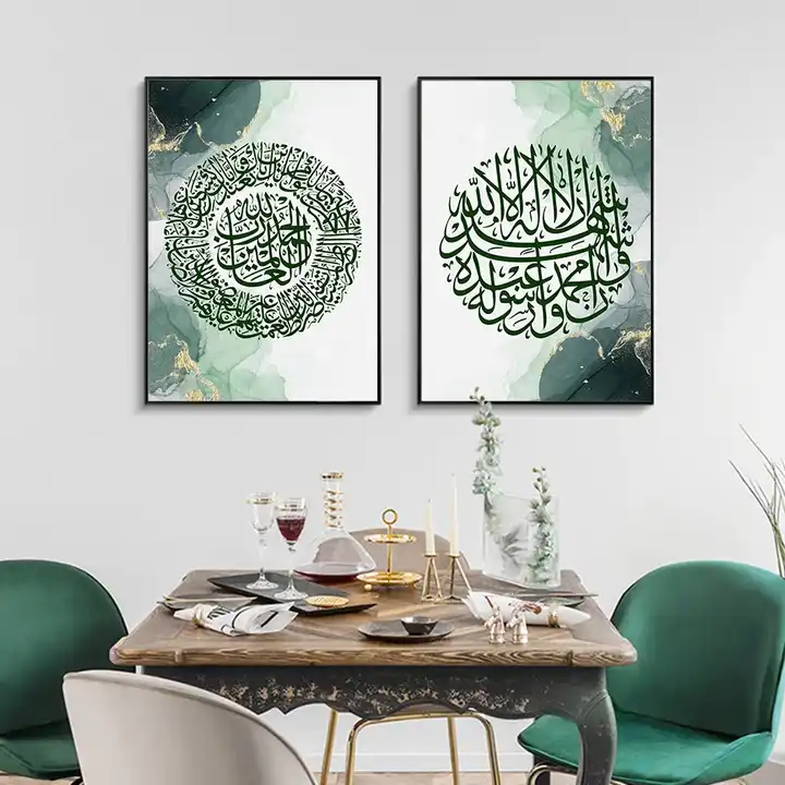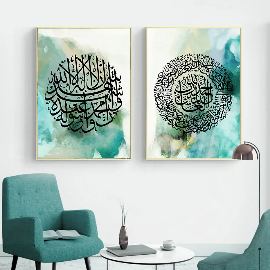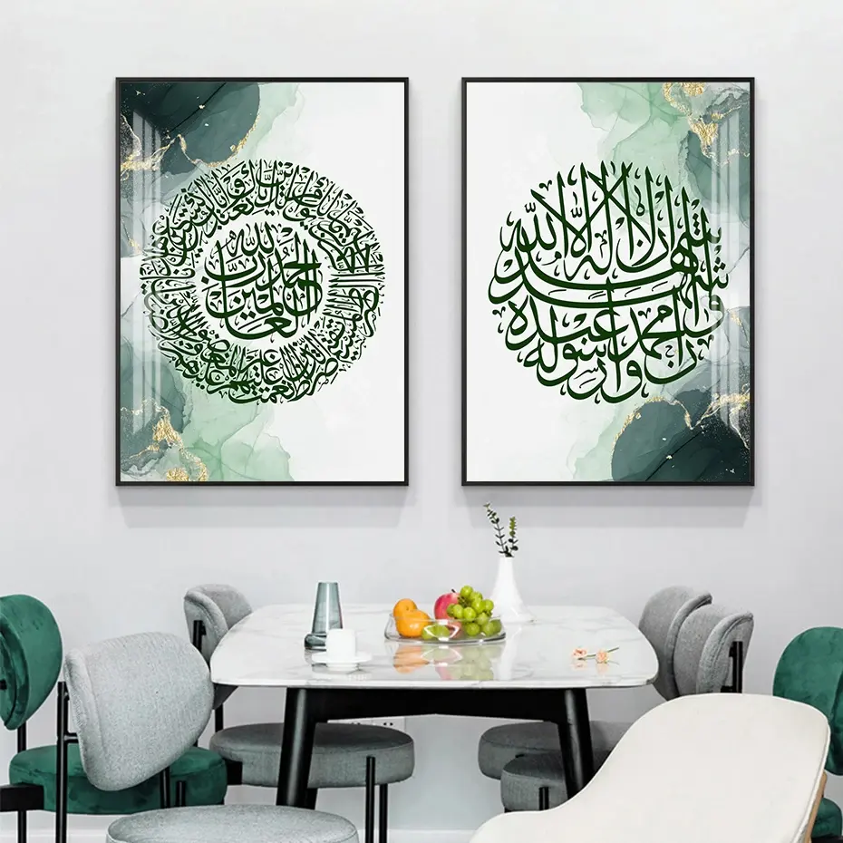 Calligraphie Islamique Abstrait Art Mural Impression Sur Toile Surah Fatiha Shahada Or Vert Salle À Manger Décor Art Déco Style