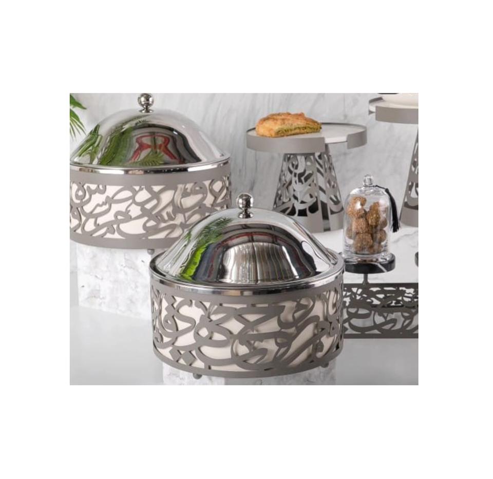 Calligraphie Islamique Marmite En Acier Inoxydable Plat Rond Plat De Service Alimentaire Toutes Occasions Décor Serveur De Nourriture Marmite
