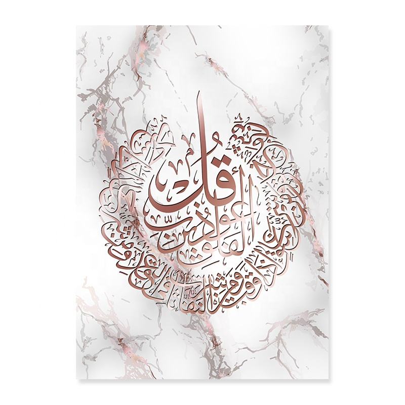 Affiche murale islamique avec calligraphie Rose or, marbre, Al Kursi, peinture sur toile imprimée, Art pour l'intérieur de la salle à manger, décoration de la maison