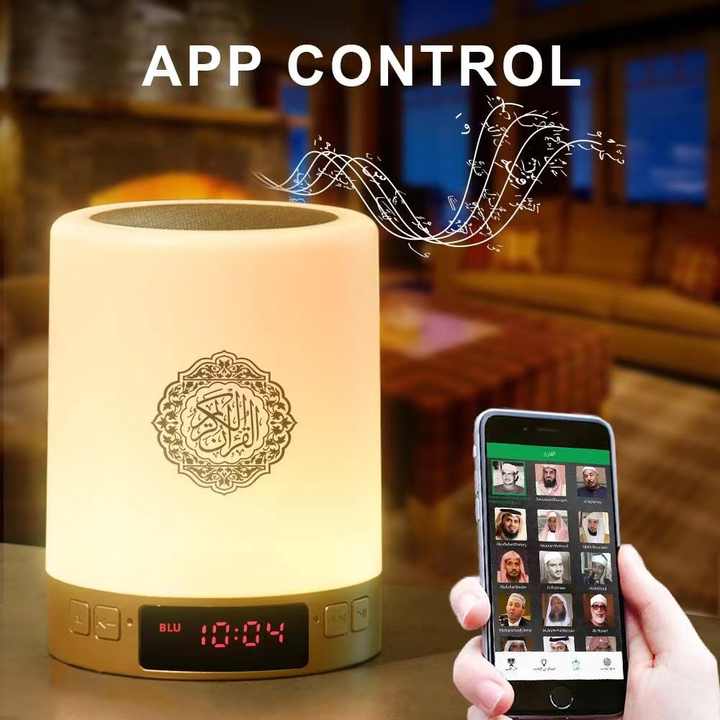Lampe de chevet intelligente Coran avec haut-parleur, application/télécommande, lumière LED, lecteur audio MP3 Coran, cadeau islamique