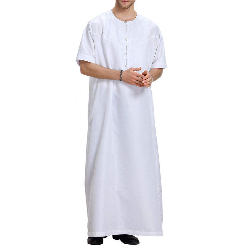 Thobe islamique pour homme nouveau design manches courtes arabe saoudien Thobes blanc couleur unie élégant prix de gros Thobe / Thawb pour hommes