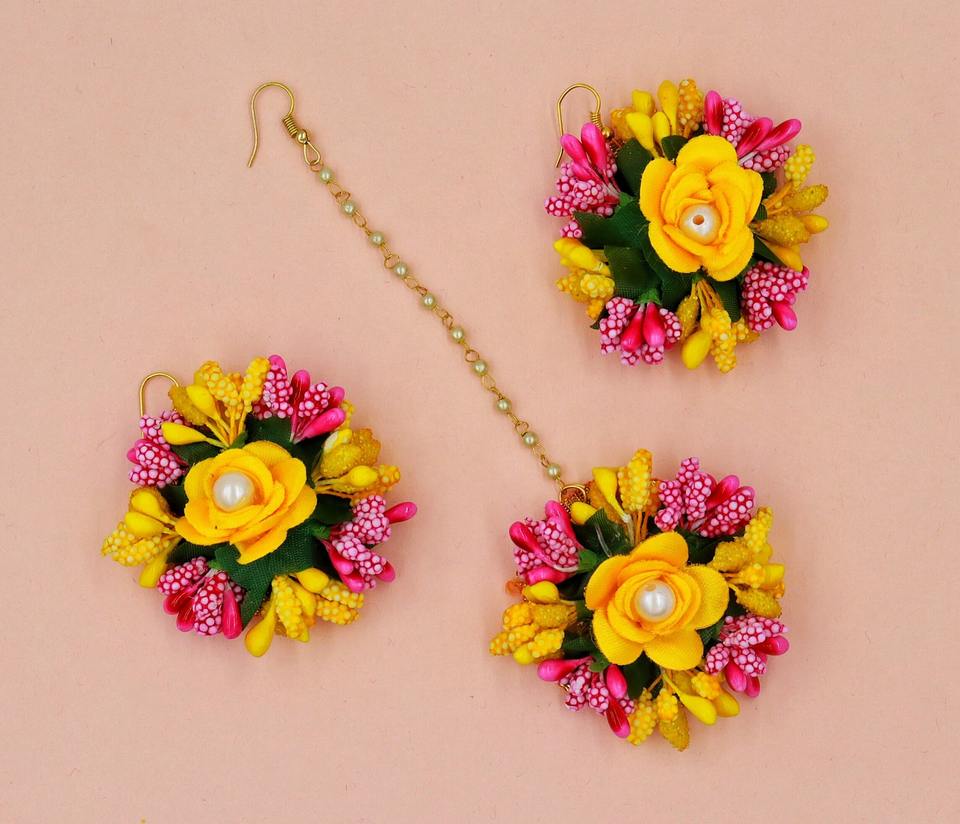 Islamic Mehndi Tikka and Earrings Bridal Jewelry Set with Multilayer Pearl Floral Beads and Elastic Band for Wedding Functions