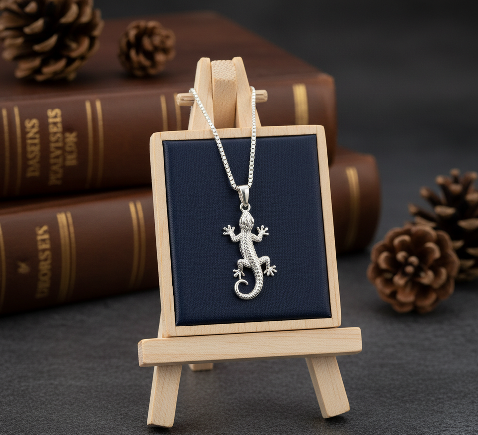Collier à chaîne islamique minimaliste en rhodium Pendentif en lézard plaqué or 18 carats Cadeau de mode tendance pour hommes et femmes