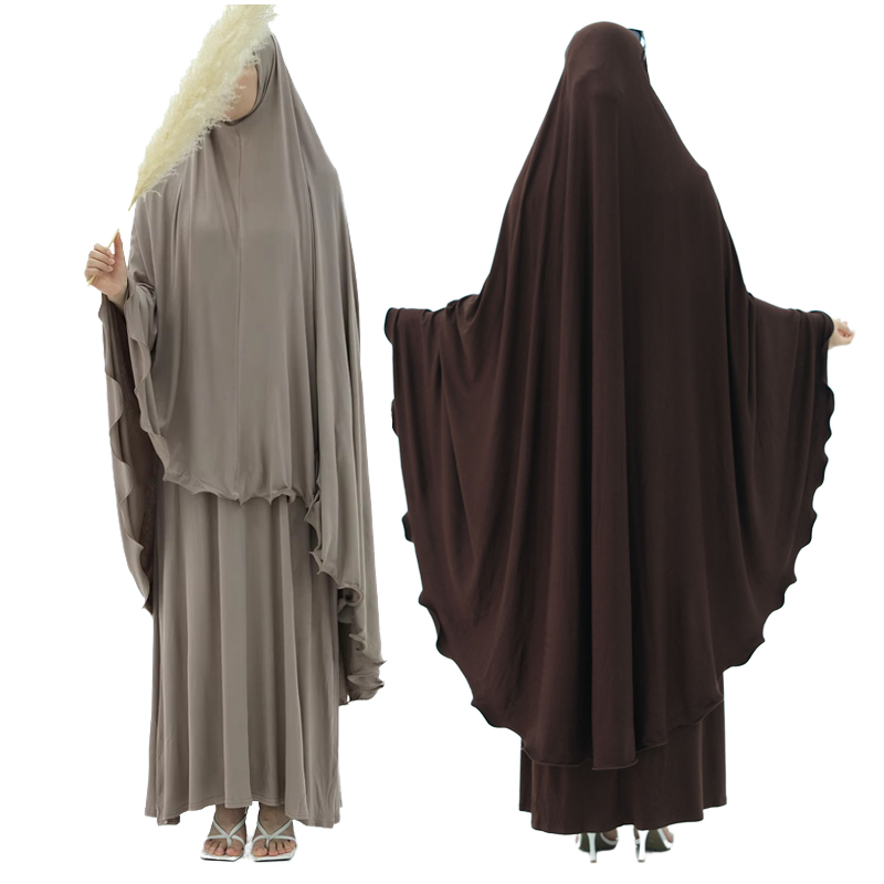 Vêtements de prière traditionnels islamiques modestes pour l'hiver, Dubai, coton modal doux, ensemble abaya 2 pièces, hijab, khimar, robe, robe musulmane pour femmes