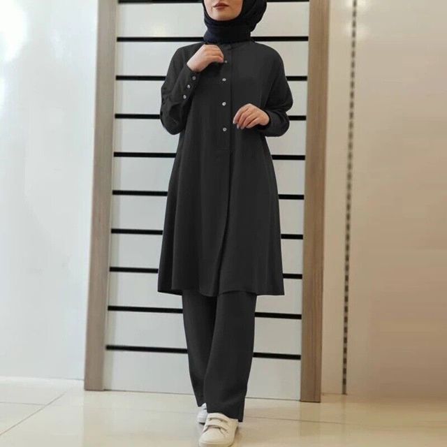 Ismail impex Muslim Simple Design Modeste Coord Sets Pour Femmes 2024 Causal Plissé lâche 2 Pièces Modeste confortable femmes ensemble