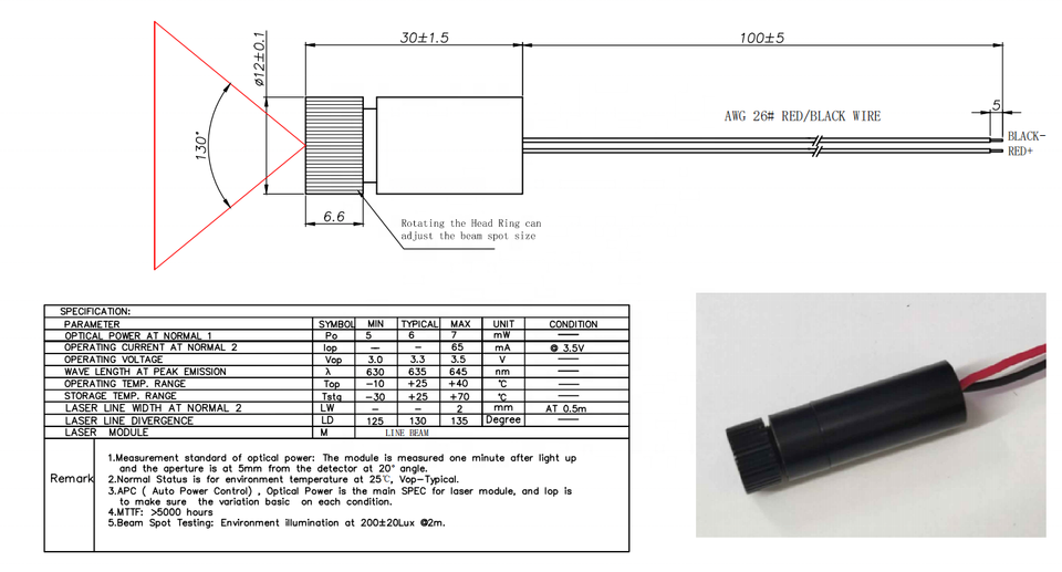 Laser head size:12x30mm