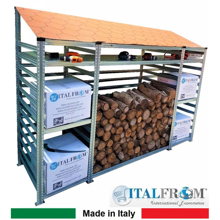 Abri en bois modulaire Italfrom L338 cm, autoportant, en acier galvanisé, module initial avec 7 étagères de rangement M1=120+