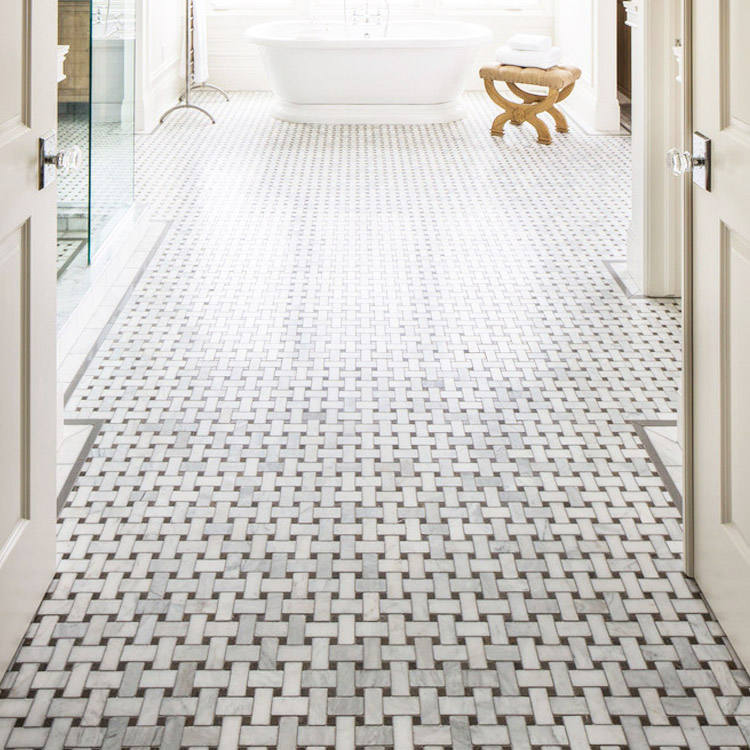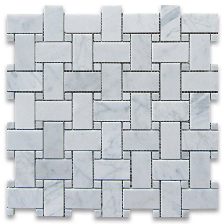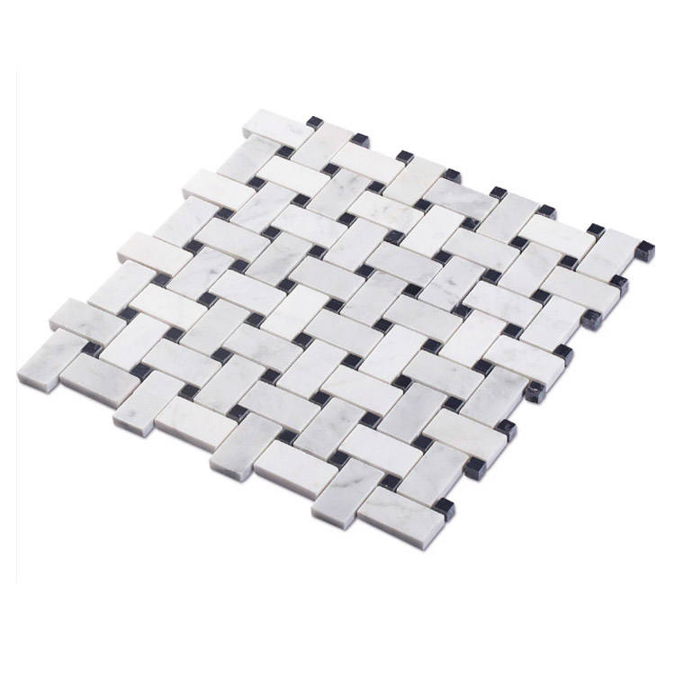 Item:black spot white carrera marble basket weave tile