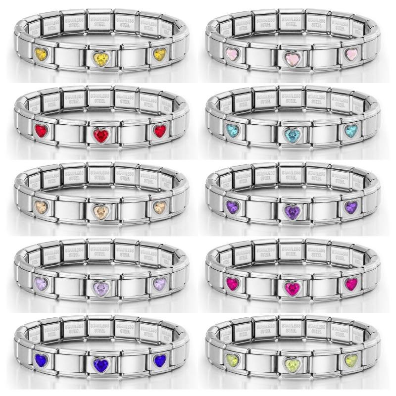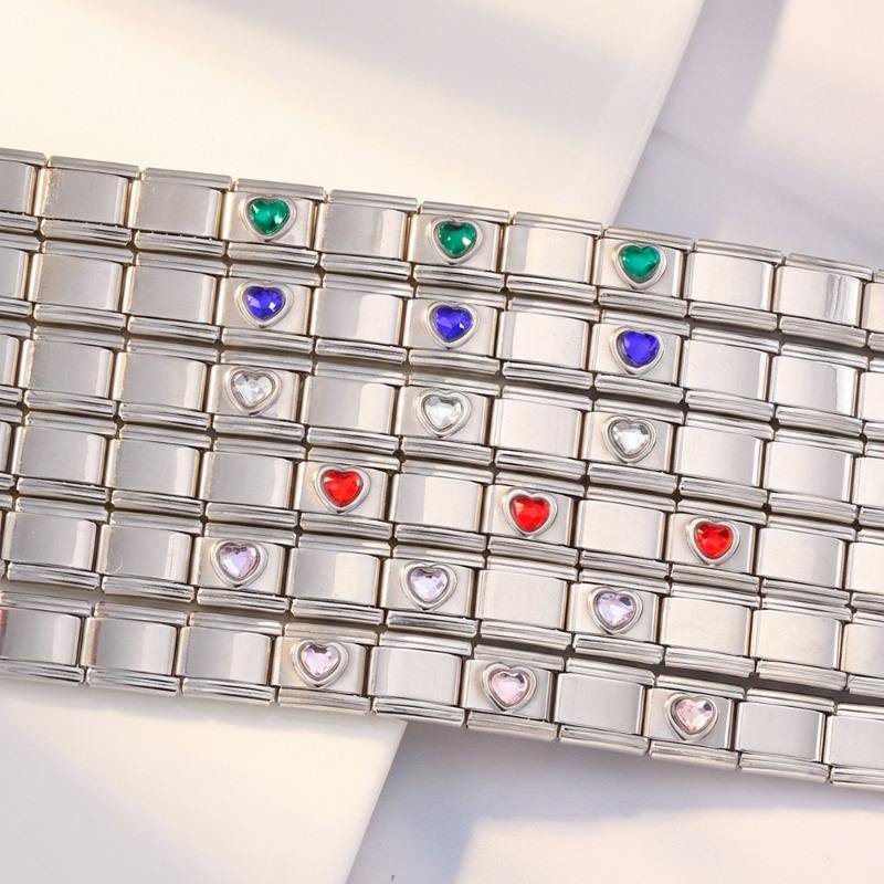 Bracelet à breloques italien en acier inoxydable, 3 couleurs, motif amour, combinaison simple, fait main, DIY
