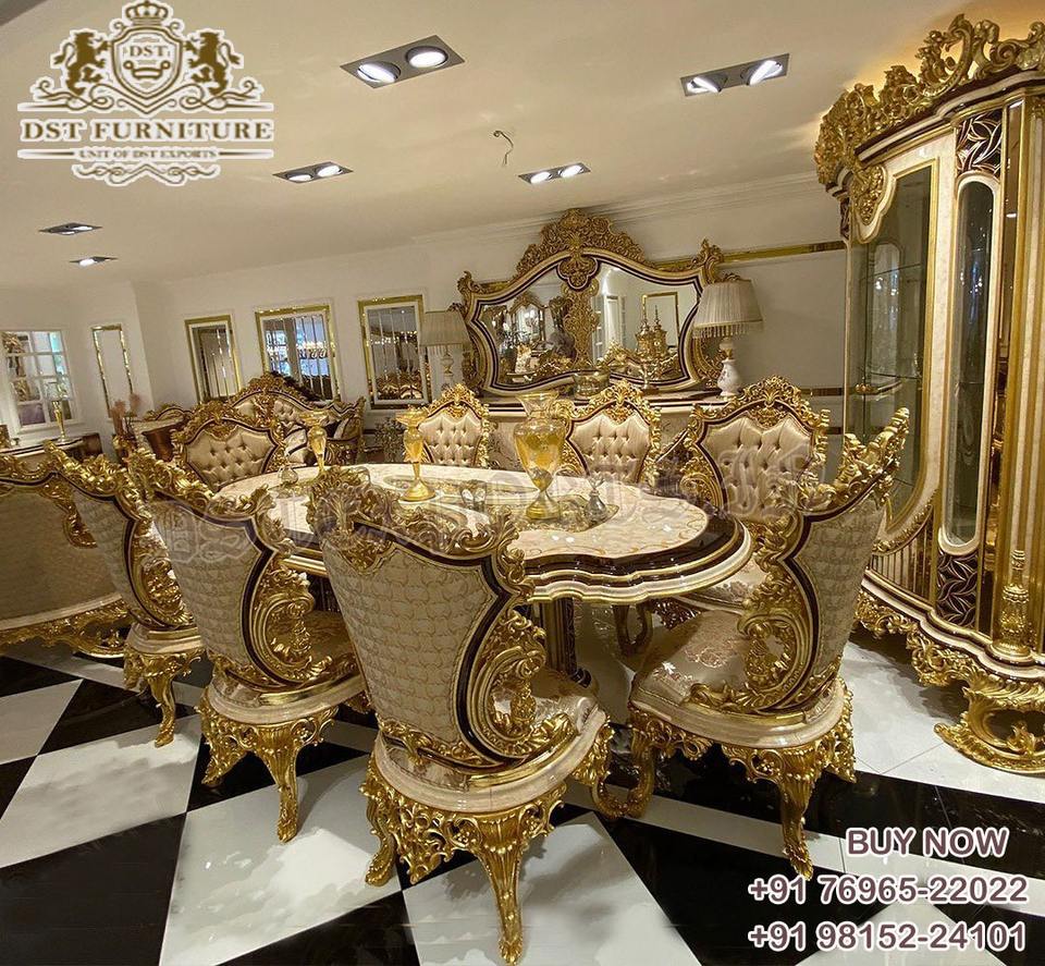 Italian Hand Carved Black Dining Room Furniture Set Stylish Antique Style Teak Wood Dining Set Luxury Solid Wood Dining Table
