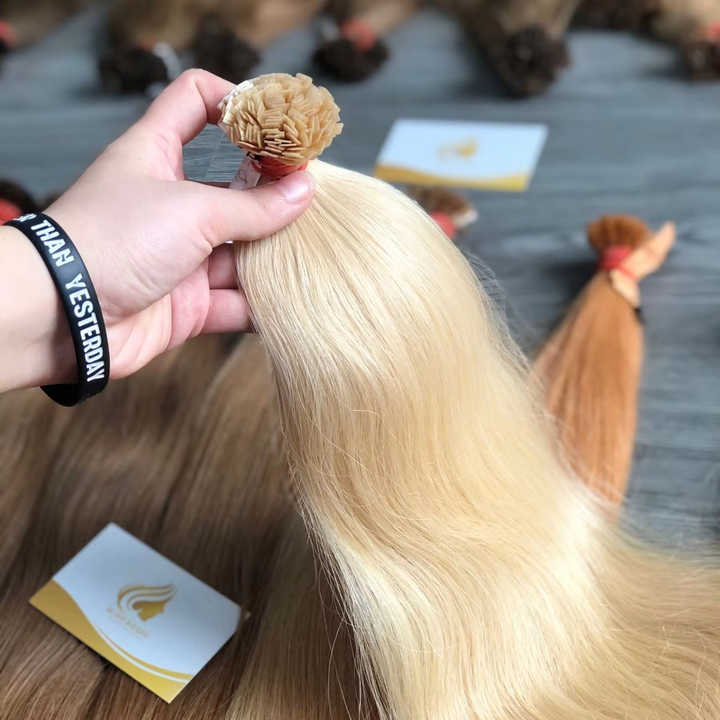 Extensions de cheveux crus alignés sur les cuticules de kératine italienne Cheveux raides de haute qualité de couleur claire Expédition dans le monde entier depuis le Vietnam