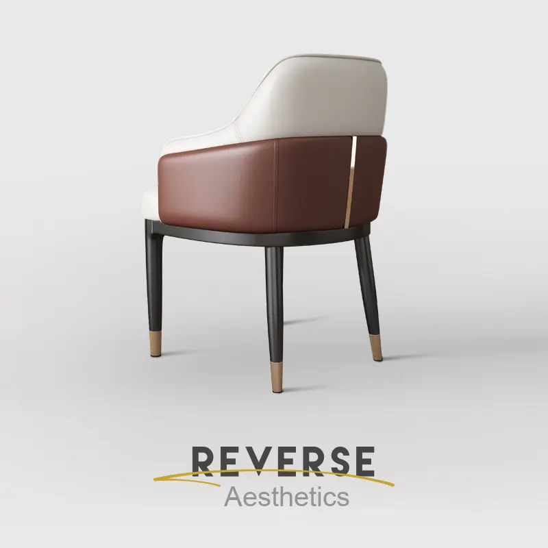Chaise de salle à manger italienne de luxe Panneau MDF Cuir PU écologique Tabouret d'hôtel moderne haut de gamme Dossier en métal pour une négociation simple