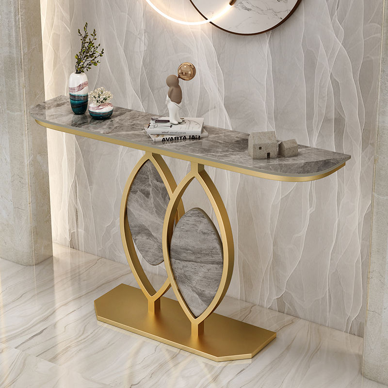 Table console italienne de luxe simple et créative en demi-cercle, design moderne en métal, pour le salon, l'entrée ou le hall.