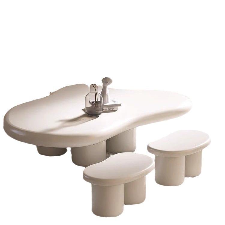 Table basse minimaliste italienne en bois style crème avec plateau en marbre et tiroir, design moderne en forme de nuage de style français pour salon