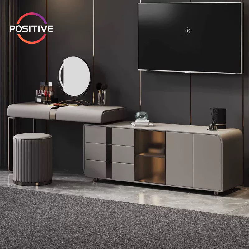 Lampe de vanité italienne minimaliste haut de gamme en laque Chambre à coucher de luxe Longue armoire de rangement rétractable Coiffeuse