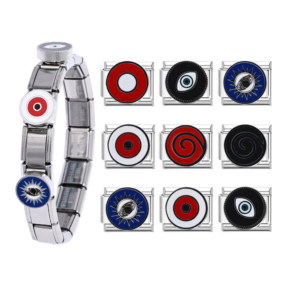 Italian Modular Bracelet Stainless Steel Rotating Charms Evil Eye Design Gift Jewelry
