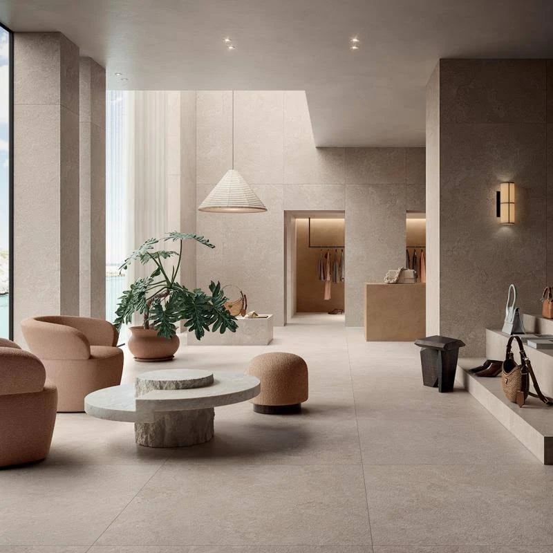 Carreaux en porcelaine italienne effet pierre, graphismes dynamiques, texture micro-brisée, utilisation extérieure. Qualité supérieure Fabriqué en Italie.