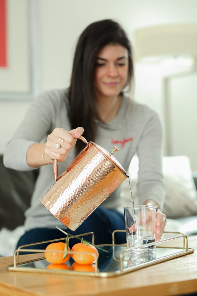 Carafe à eau en cuivre pur à 100 %, design italien haut de gamme, écologique, fabriquée en Inde pour les mariages