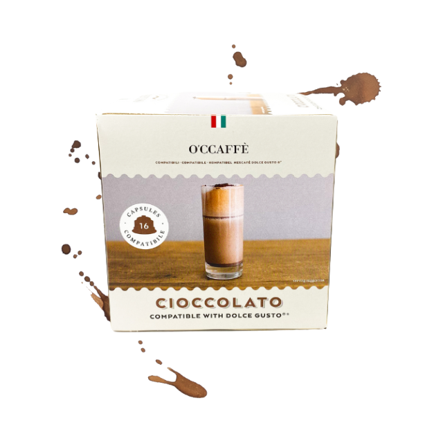O'ccaffe Cioccolato Compatible Dolce Gusto Boîte de 16 capsules dans un carton pour usage domestique