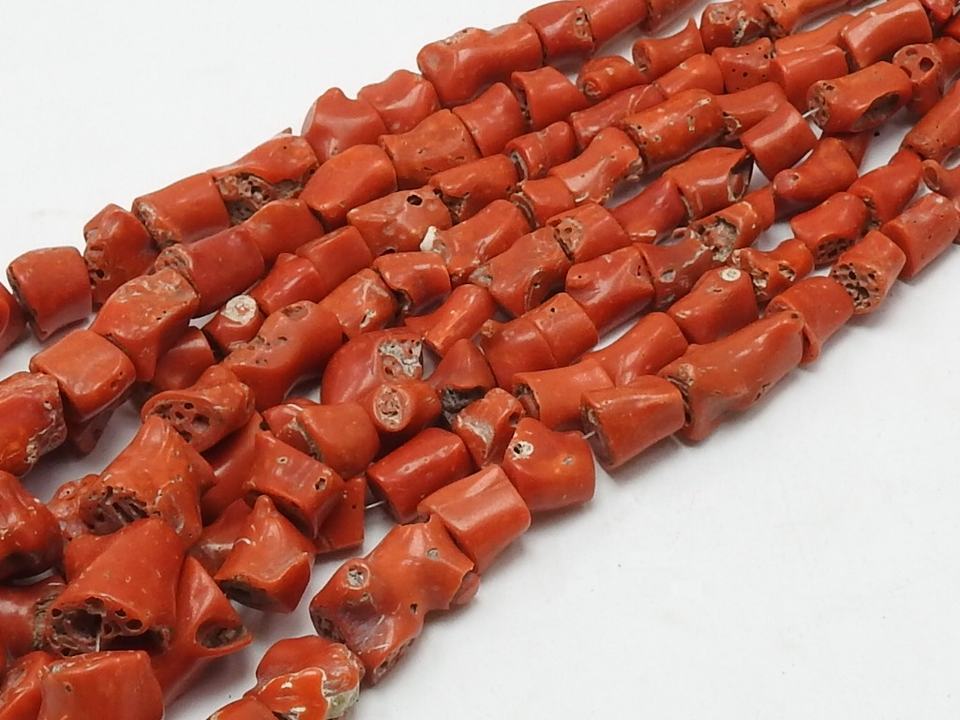 Perles de corail rouge italien lisses et polies, forme irrégulière, pierre en forme de tube, 16 pouces, 10-15 mm de long, certifiées par un tiers