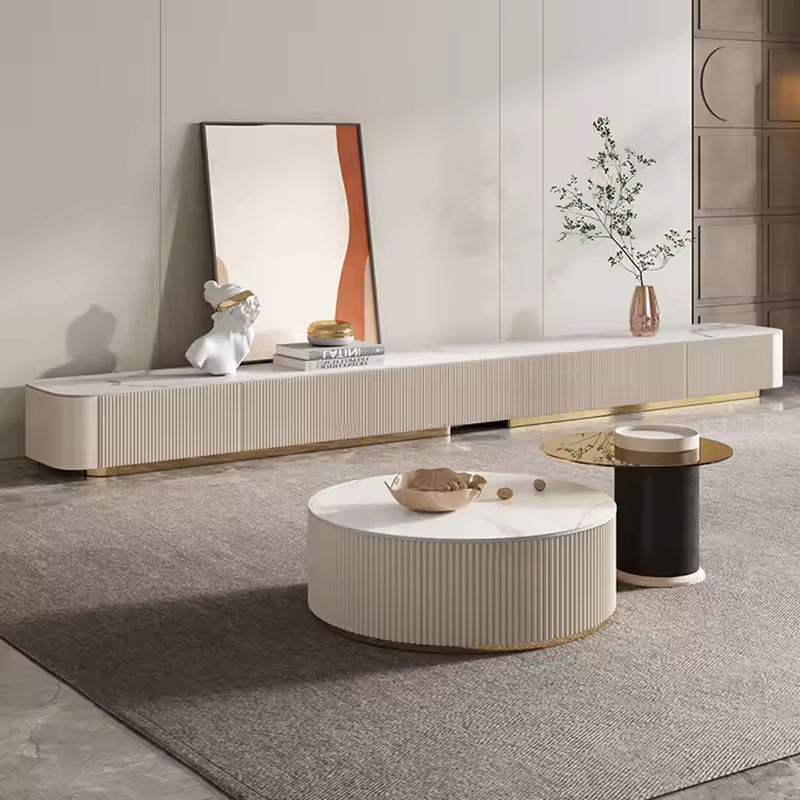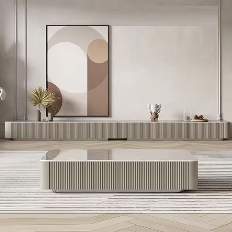 Combinaison Meuble TV Table Basse en Grès Cérame Italien Luxe Moderne pour Salon, Long Meuble de Rangement au Sol