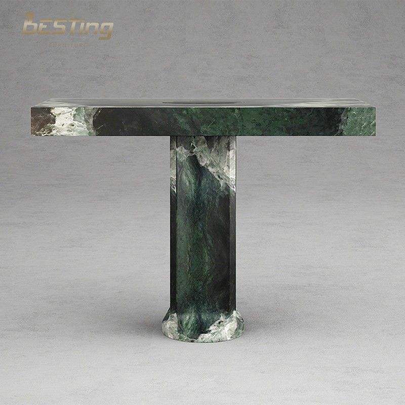 Table console en forme de T arche de luxe de designer scandinave italien avec entrée en marbre vert