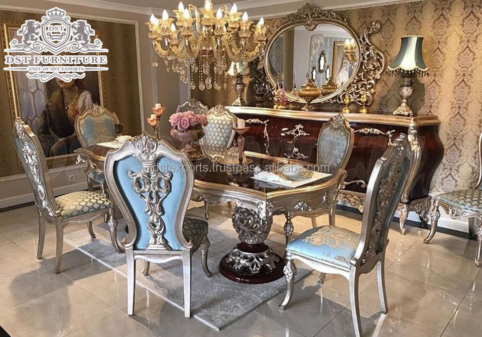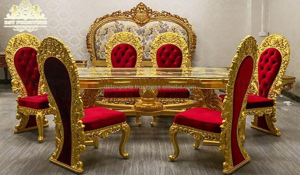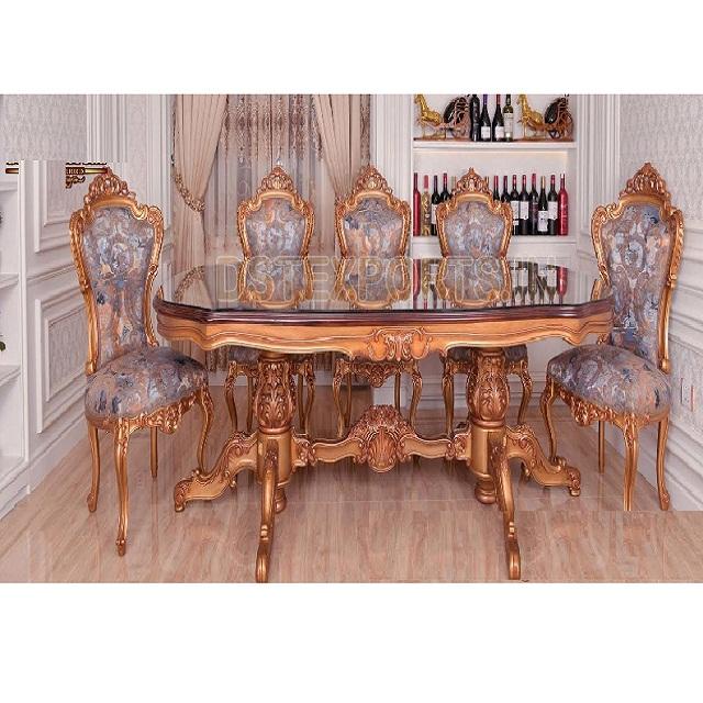 Bens — ensemble de Table à manger en bois massif de 6 places, style italien classique, finition dorée