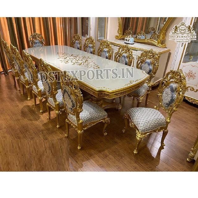 Ensemble de table à manger de style italien en or poli Ensemble de table à manger 12 places sculpté à la main Ensemble de salle à manger exclusif à double sculpture