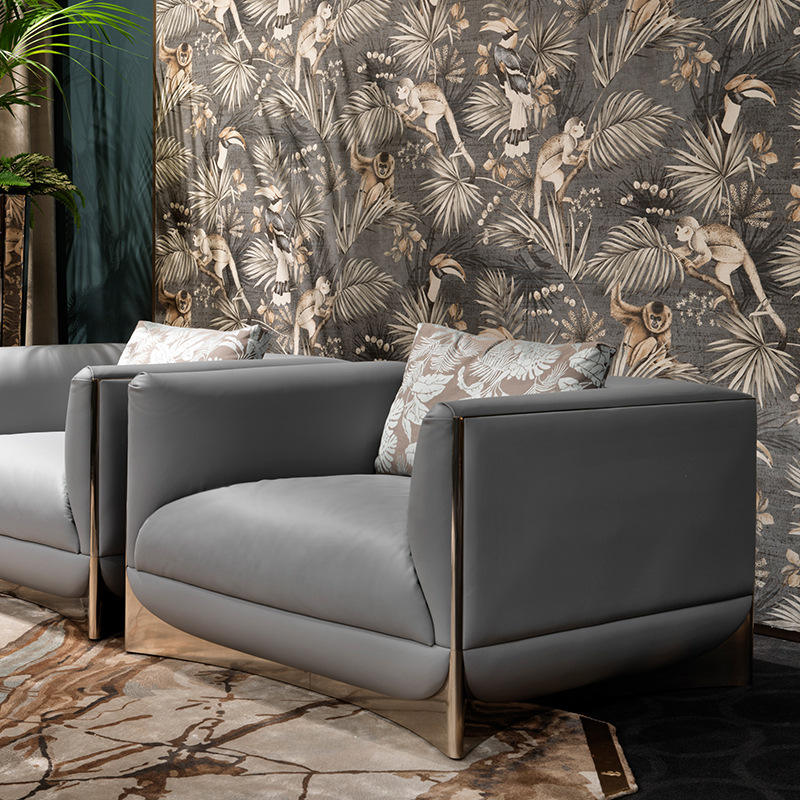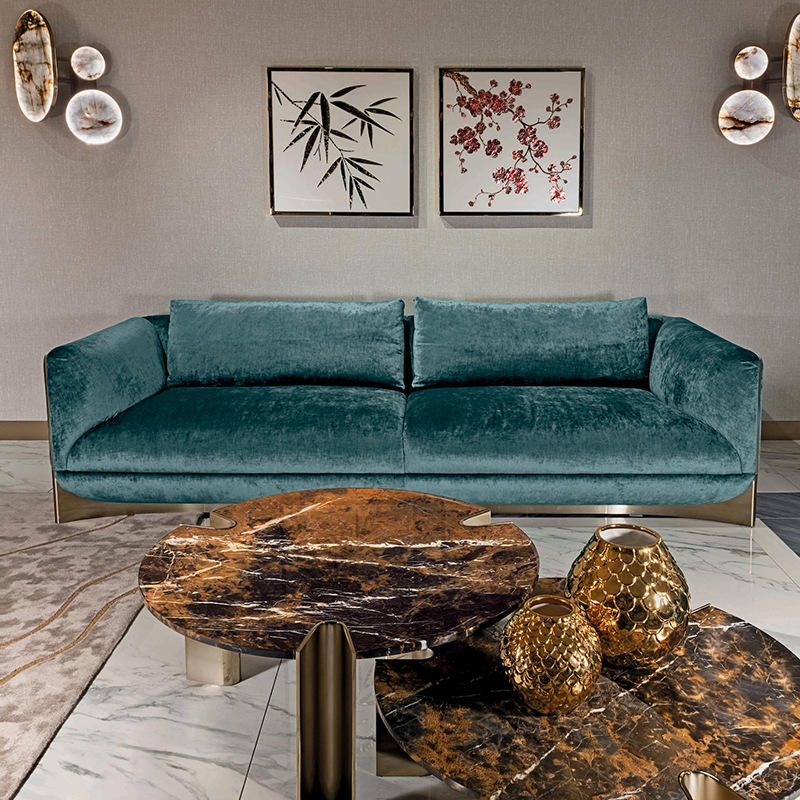 Canapé en tissu de style italien, luxe léger, forme droite, trois places, rembourré avec rembourrage en mousse, pour villa, manoir, grand appartement